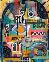 - Peinture acrylique, spray, encre, pastels à l'huile, crayon & collages sur impression sur papier Beaux-Arts - 320g/m2